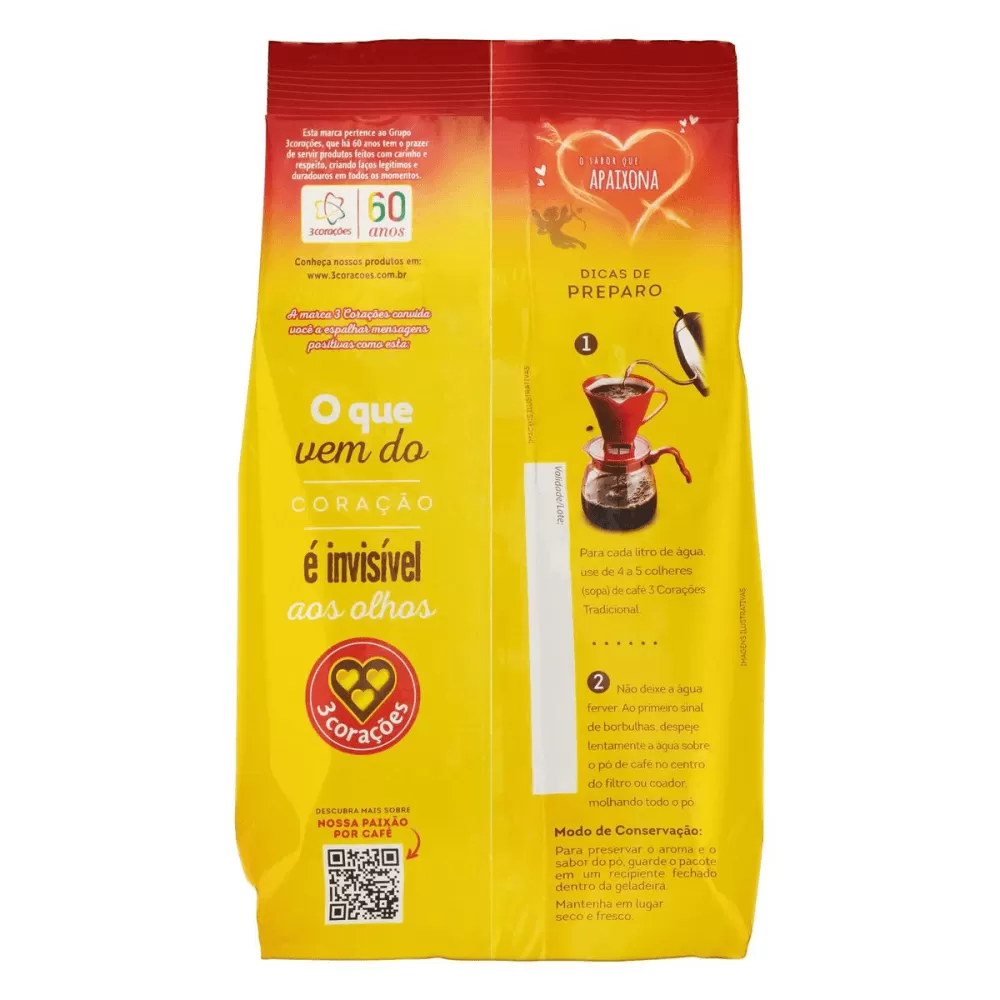 há mais de 40 anos, o café 3 corações tradicional leva a mesa dos consumidores, o prazer do sabor equilibrado, forte, com aroma intenso e que promove a cada amanhecer, experiências apaixonantes ao lado de quem mais amamos.