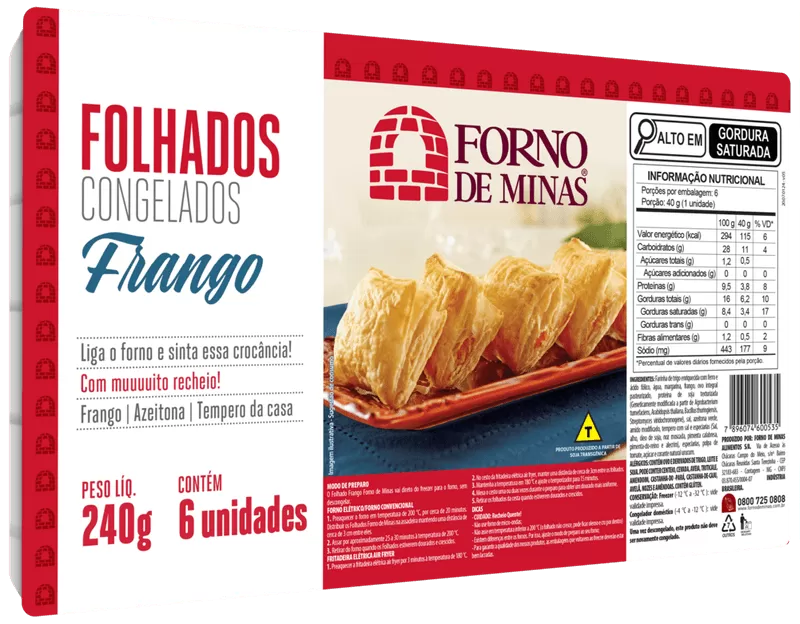 FOLHADO CONGELADO DE FRANGO FORNO DE MINAS BANDEJA 240G 6 UNIDADES