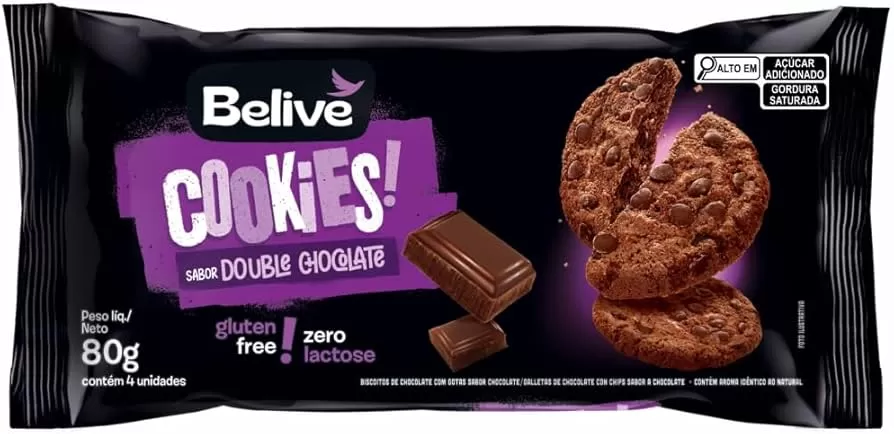 cookie double chocolate sem glúten e sem lactose belive 80g - um delicioso e práticos cookie double chocolate sem glúten e sem lactose, ideal para todos aqueles que têm intolerância a esses alimentos. uma delícia saborosa para saborear com o lanche da tarde ou como sobremesa. para usar este produto, basta um pouco de criatividade e delicadeza na hora de servir, e os resultados serão deliciosos.