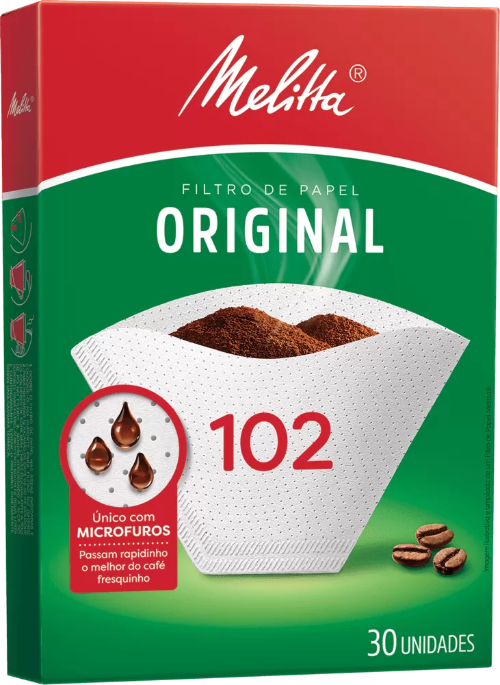 modo de uso: 1. dobre o filtro de papel nas áreas indicadas e coloque-o no suporte para filtro 102 (médio); 2. para preparar 12 xícaras de café 50ml, coloque 2,5 colheres de sopa bem cheias (equivalente a 50g) de pó no filtro; 3. sempre segurando a alça do suporte para filtro, acrescente 600ml de água, lenta e continuamente.